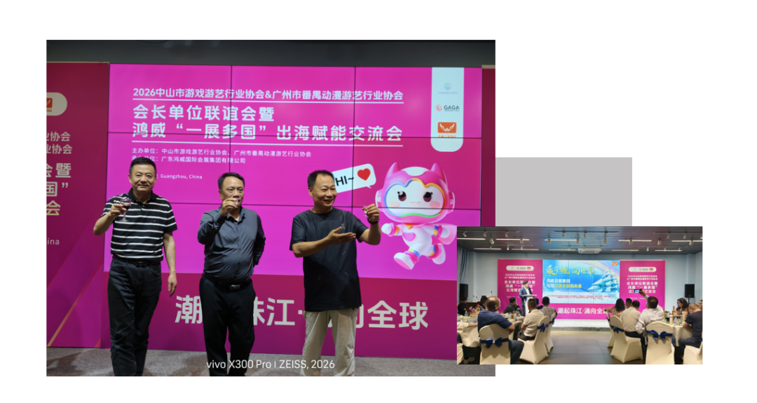 为延续历年行业联谊传统,深化协会与企业之间的沟通联结,同步抢抓游乐行业全球化发展机遇,4月10日,“潮起珠江·涌向全球——2026 中山市游戏游艺行业协会&广州市番禺动漫游艺行业协会会长单位联谊会暨鸿威‘一展多国’出海赋能交流会”在广州成功举办。